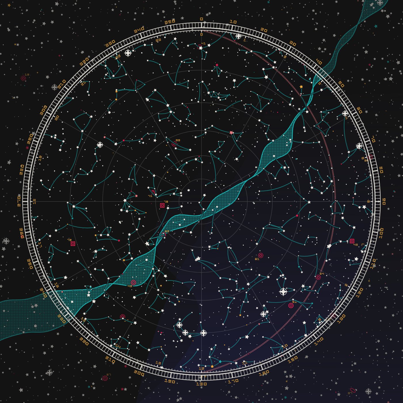 At night, from Earth’s orbit, you see the lights of Earth’s cities. The webs of light represent all the human life on the planet.